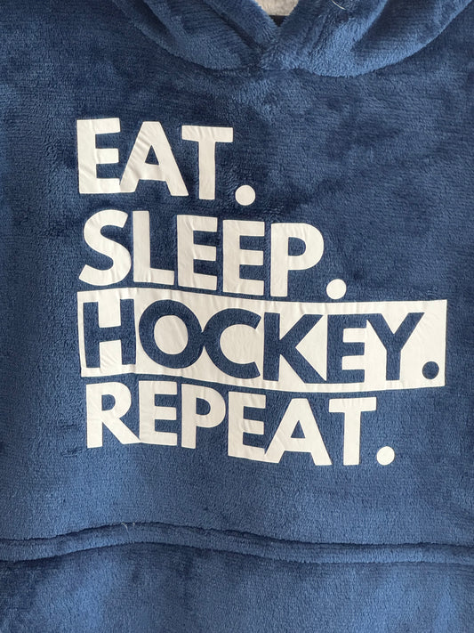Eat. Sleep. HOCKEY. Repeat. Navy Wearable Blanket